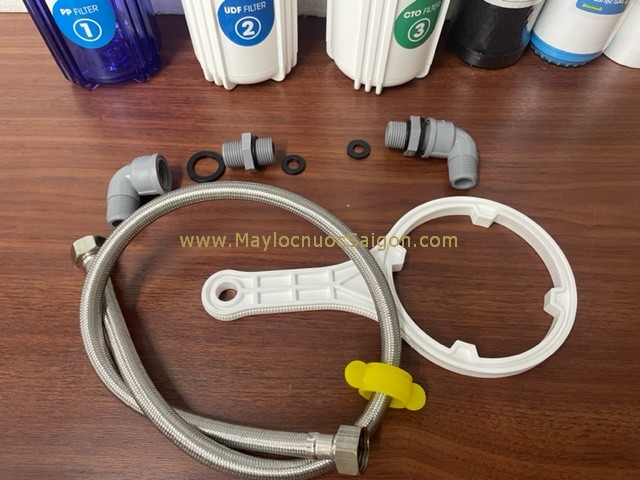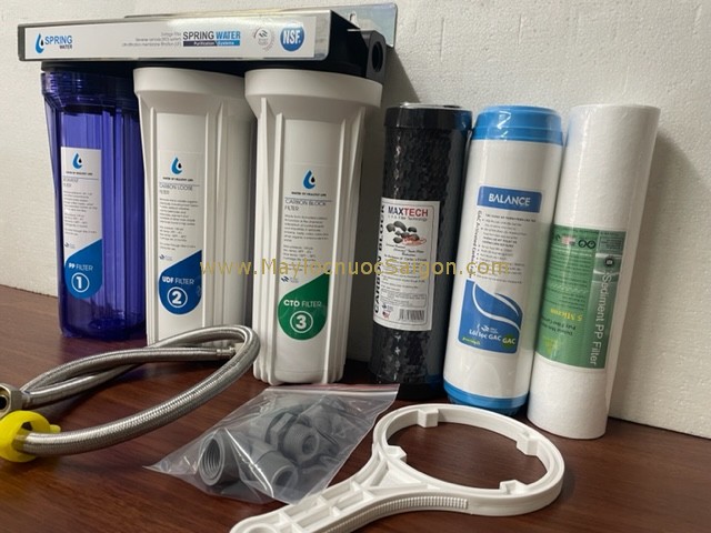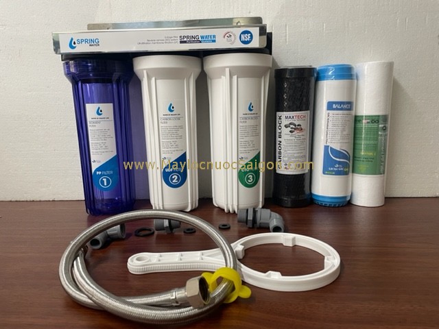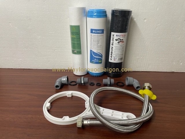 Bộ lọc nước 3 cấp 10 inch chất lượng cao phù hợp cho lọc nước uống và chế biến thực phẩm; sản phẩm an toàn, bền đẹp, dễ lắp đặt.