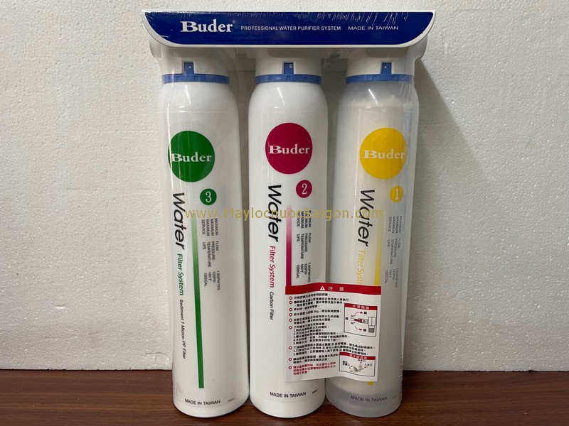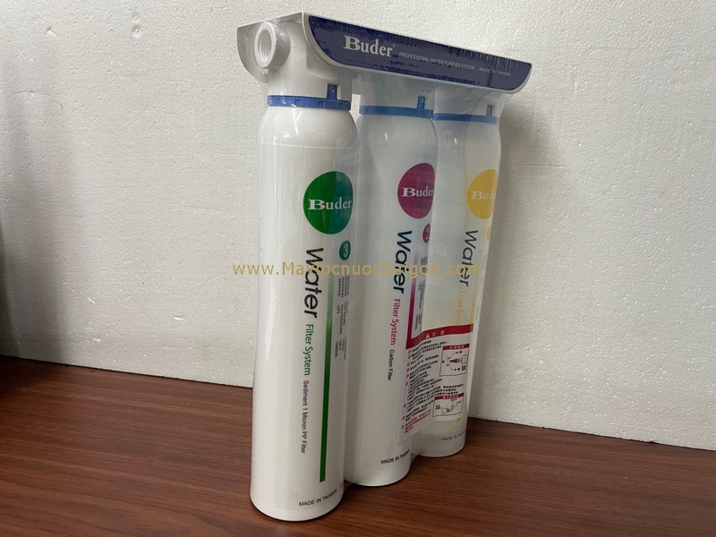 Bộ lọc 3 cấp Buder được MaylocnuocSaigon.com nhập khẩu và bán trực tiếp. Bộ lọc gồm 3 lõi lọc đúc để lọc sạch và tạo ra nguồn nước an toàn, phù hợp cho thiết bị cần nguồn nước sạch: